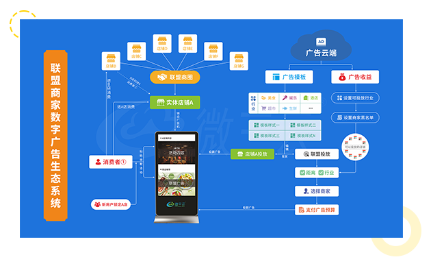 【微三云·广告营销系统】是一套结合了数字广告屏、广告系统和微商城/异业联盟的针对线下门店进行门店营销、策划、设计、落地为一体的数字广告营销系统。