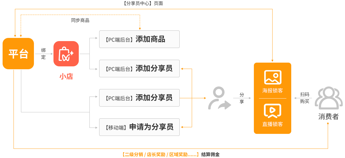 注:① 消费支付的钱到“视频号小店”,由平台设置商品分销奖励,并结算佣金。
